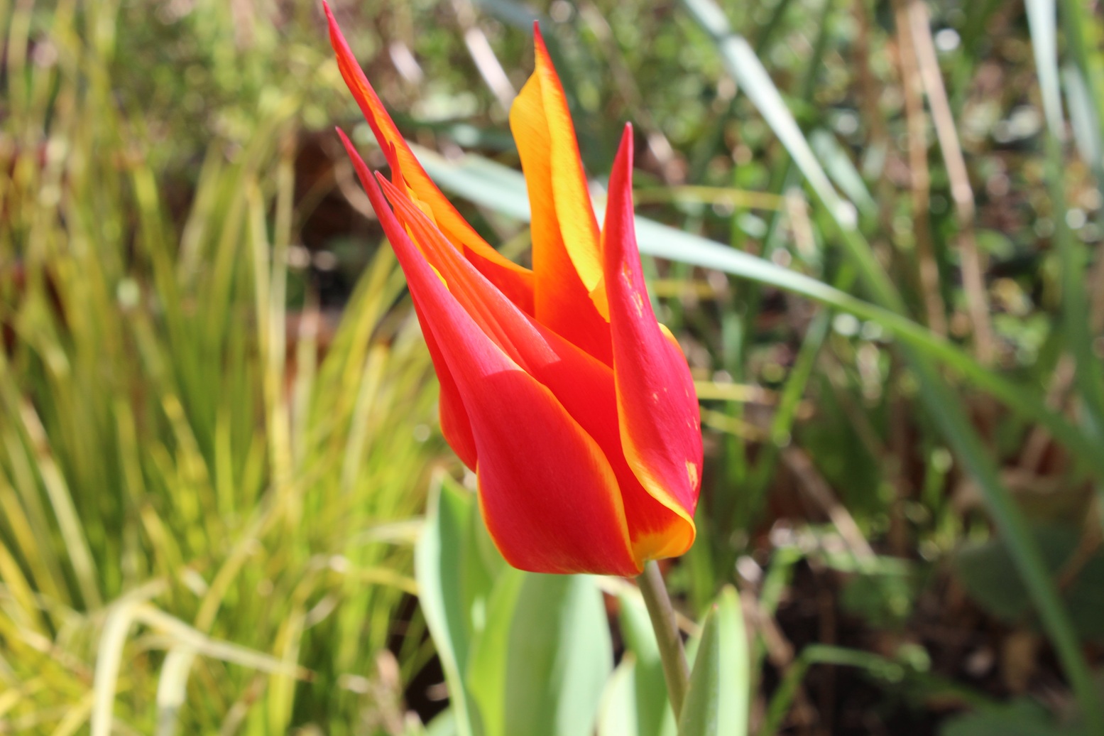 All alone in the world, the arrival of this jolly tulip is a mystery. No complaints here.