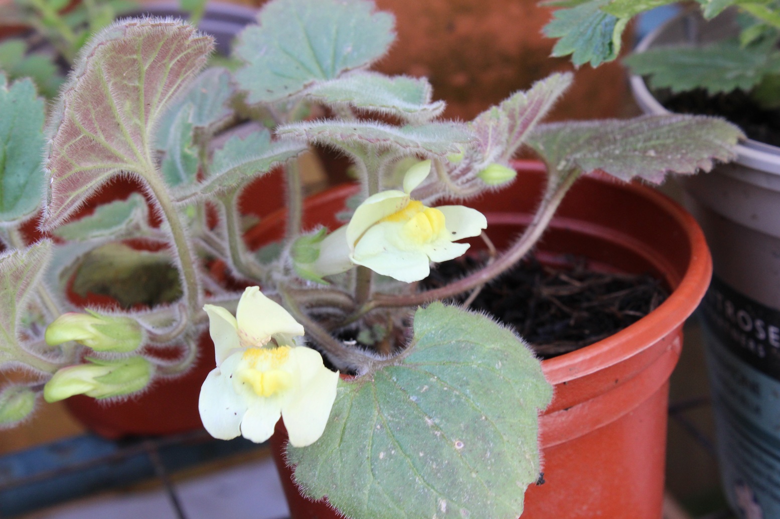 It was a surprise this week to find flowers on the Asarina procumbens that were grown from seed last year. At the end of the season they were shoved into the plastic greenhouse, where the less than precious but more than average go for the winter. There are three, so I will probably keep one and pass the others on. Very pleased.