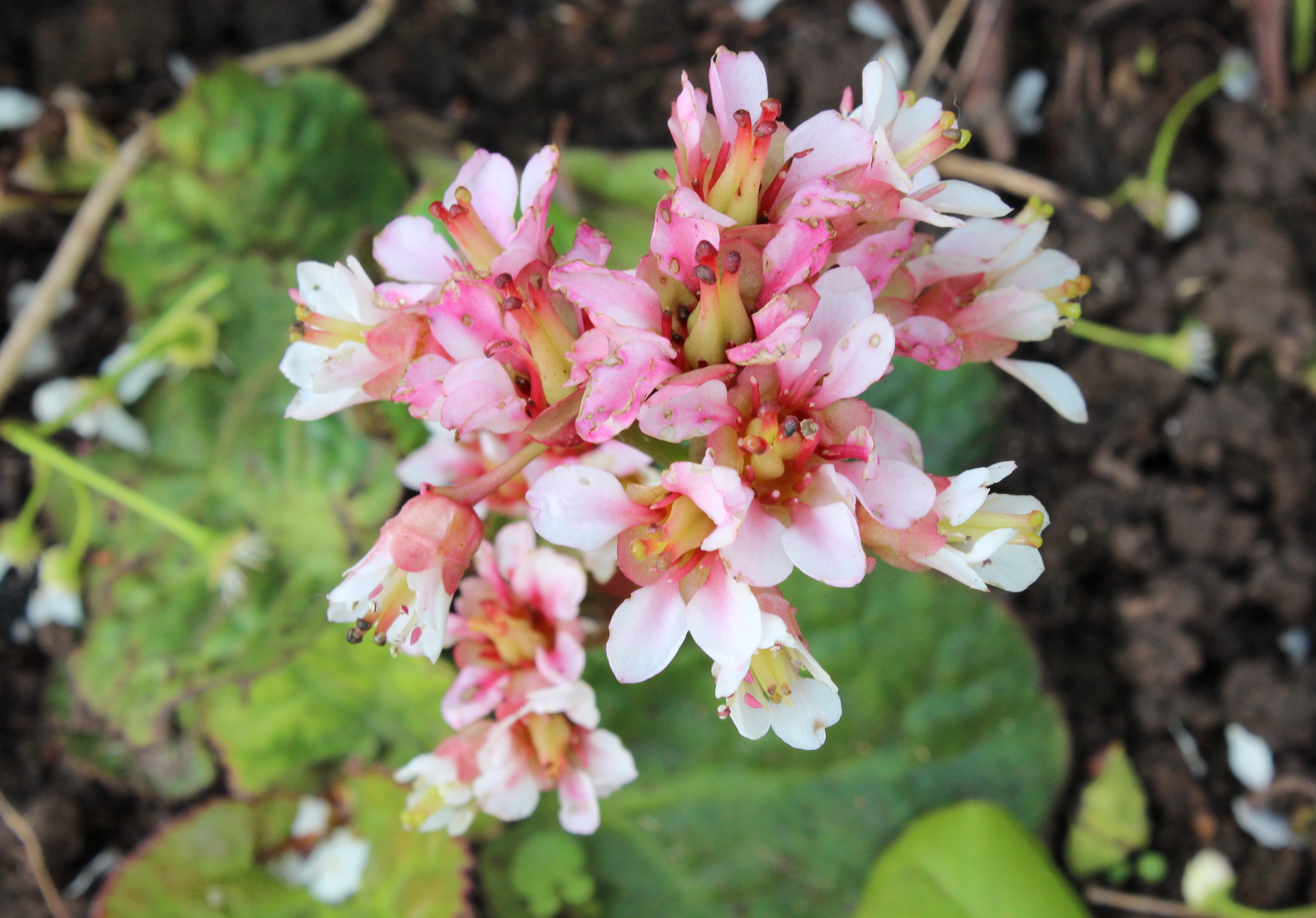 Bergenia ciliata ‘Dumbo’ settled in nicely last year but got knocked back by the autumnal frosts. The flowers are looking a little ragged after a battering from wind and rain, but I love them all the more for that. Now the leaves will have to make an effort to return to their former glory and beyond. As a postscript; anyone else call them “silly arse-a”? I thought as much.