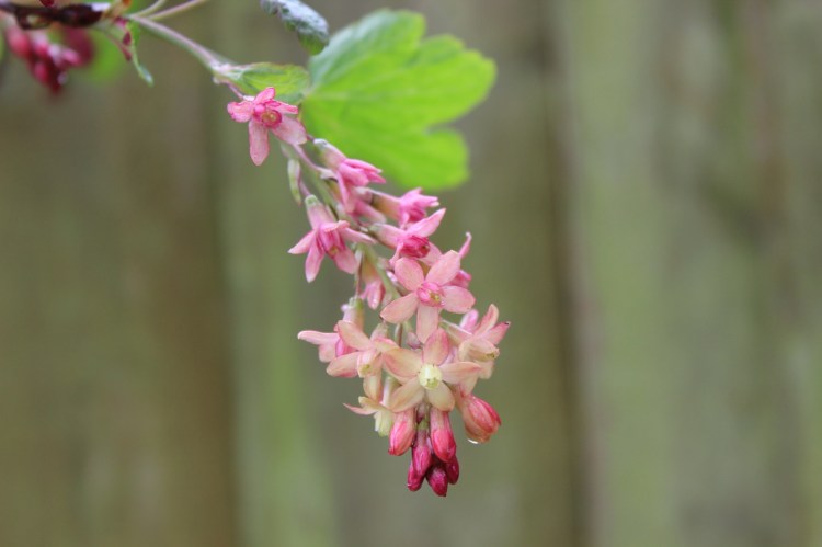 The currant with two names, Ribes x gordonianum and Ribes x beatonii, is less flash than it’s sanguineum cousin but just as beautiful.