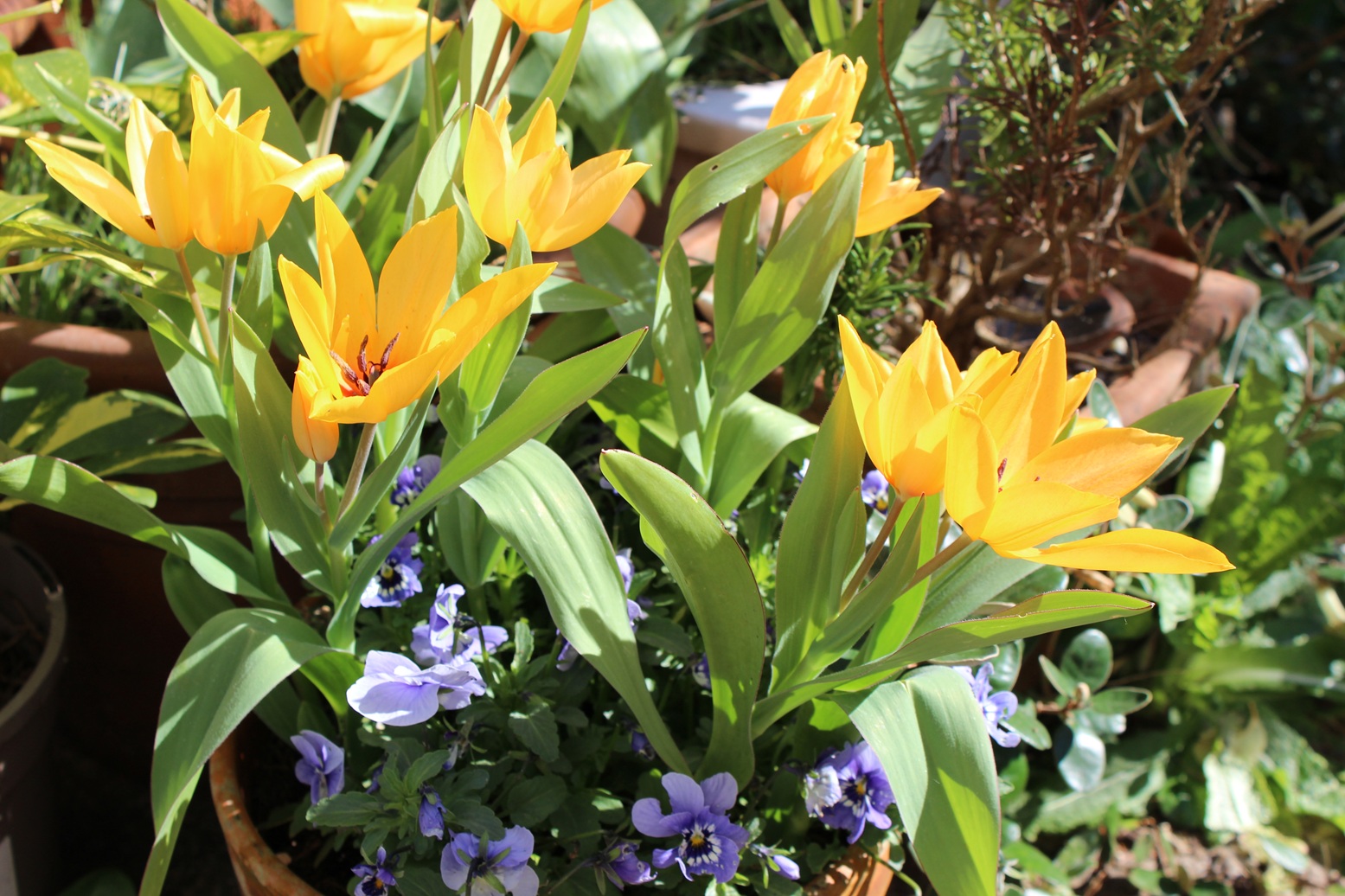 Tulipa praestans ‘Shogun’ has been making a fine display for the last few days. Initially I was going to show you a picture of its gaping amber blooms, a colour as warm and comforting as banana ice cream. Then I noticed the fine combination of voila and tulip and did a complete U-turn. I’m like that. Fickle.