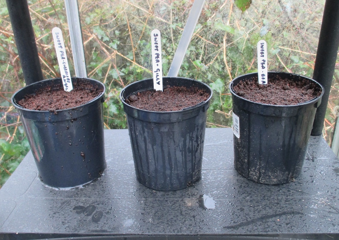 The weather was atrocious yesterday, making it the perfect day for the first sowing session of the year. To mark the occasion we had a Sowing Bee at The Farm. Although owner of a mysterious box of half empty seed packets Mrs G allegedly hasn’t grown anything from seed before. Perhaps nocturnal sowing somnambulism is the reason that the courgette packet was empty, perhaps Mr G has a secret allotment garden full of monster leeks that we haven’t found yet, perhaps Mr D has been growing celeraic to satisfy Babe “Psycho Chihuahua”‘s lust for nobbly vegetables. Whatever the reason it was a privilege to show Mrs G just how simple and rewarding growing plants from seed can be. We sowed sweet peas, Californian poppies, french marigolds, Welsh poppies, beetroot and parsnips in modules, sugar snaps, agastache, rudbeckia. Nothing rare, nothing complicated, just good garden-worthy plants. Plants that will fill the site with colour and plants that will taste good. Plants that will win the Village Show. Sorry did I say that out loud?