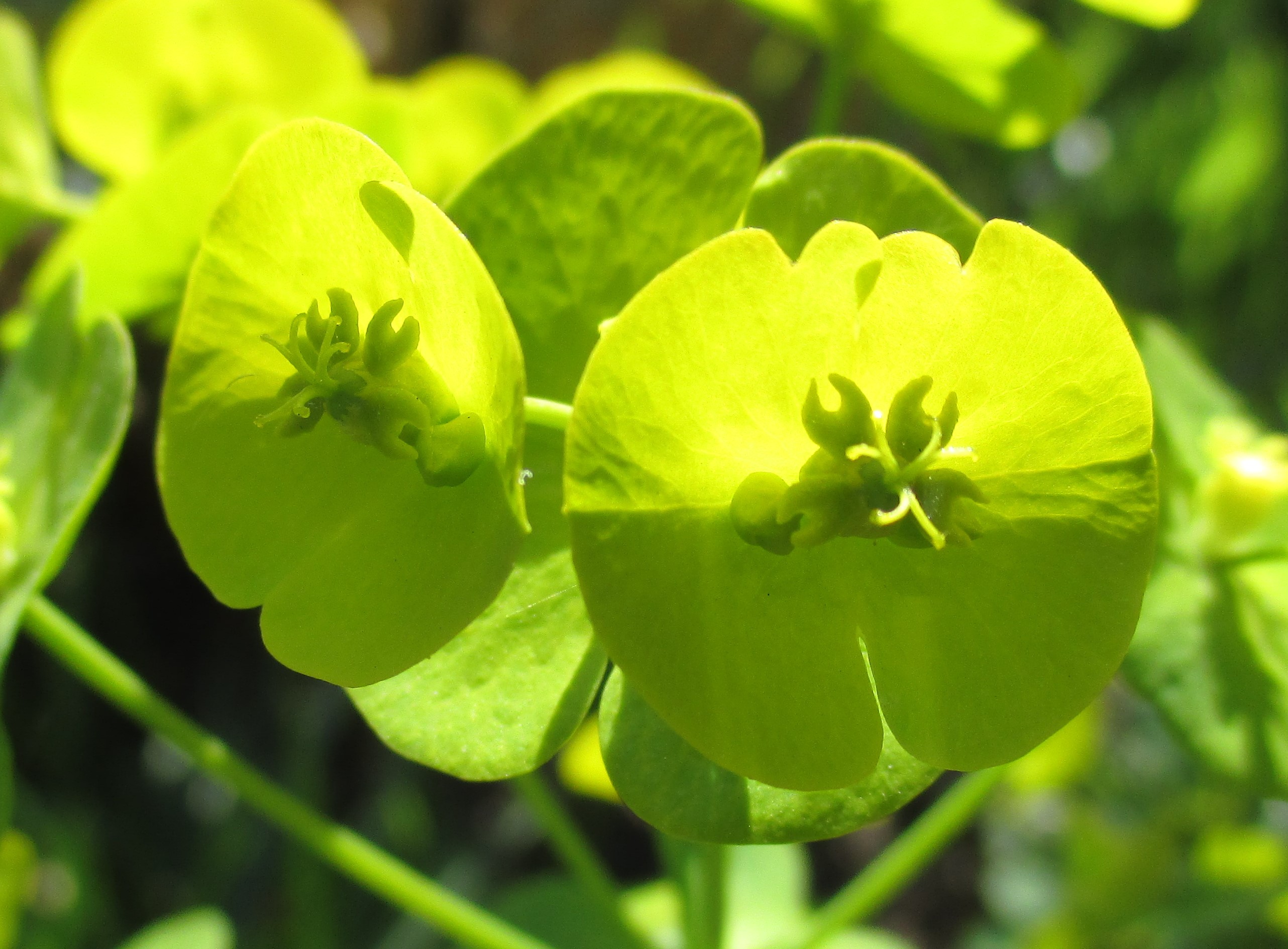 For the gardening community this is the busiest time of year. What exacerbates these hectic days is that there is no gradual lead-in to the chaos. Much of the garden has been snoozing for the winter months and all at once, without any gentle stretching or leisurely breakfast, spring is up and running and half way down the road. If we are not very careful we can be left behind in its wake, spinning round like a cartoon character. Things are going off left, right and centre, weeds are popping up at an alarming rate and all those jobs you meant to get done before growth started are mocking you. It is difficult to know quite where to begin, our minds become panicky and clouded with chores. So, just for a moment, let yourself become lost in the cool and calming lime green flowers of this euphorbia. Then come on, shake a leg, get moving, or you will never catch up!