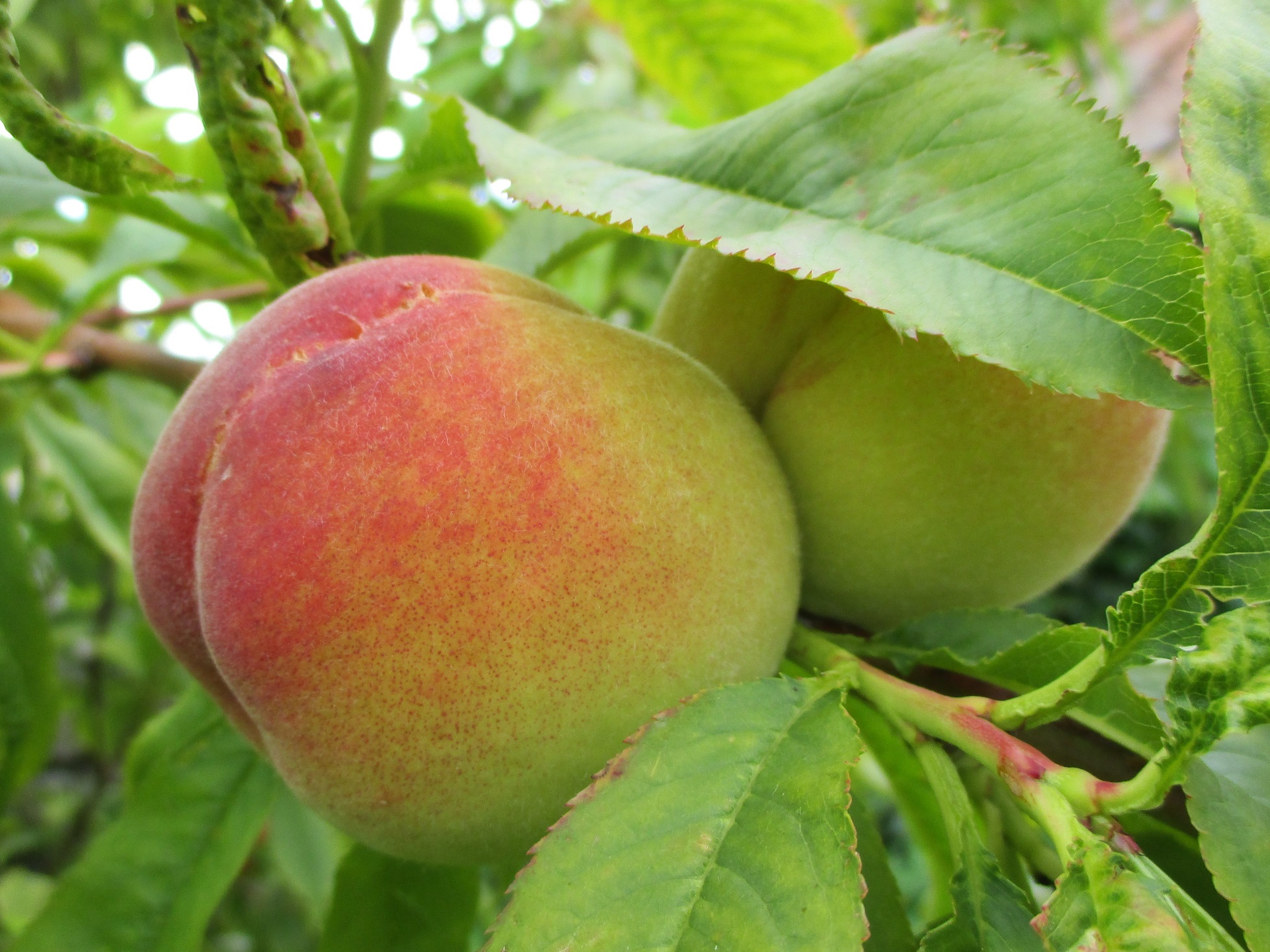 The peach tree was a wedding gift to The Swotties, only a couple of years ago. This year it has a dozen or more velvety fruit. Just peachy.