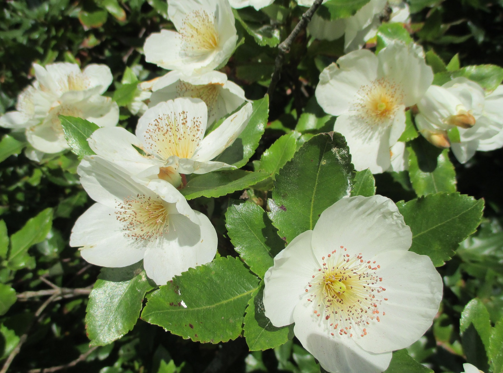 IMG_0572It was my first day at a new job today, which is always a little scary.  It is one I have talked about previously, you may remember, the one with all the exotic plants and a puppy called Max.  For some reason I was more nervous than usual and couldn’t quite put my finger on it.  Perhaps it was fear of the unknown, or fear of failure, but more likely it was the abject terror of negotiating the hairpin turn and vertiginous drive.  So when the approach was mastered, albeit in an inappropriate gear (will do better next time), I felt a little better.  As I reach the house I noticed a shining white sail in the garden behind.  I was grandly welcomed by the gorgeous Max, who ensured I was fed, watered and looked after for the whole day (which I might add was as glorious as a cliché summers day).  What is more, my introduction to this lovely garden was working beneath this beautiful eucryphia, the alabaster sheet spotted earlier, where I was serenaded by an avian choir.  I really had no reason to be worried.