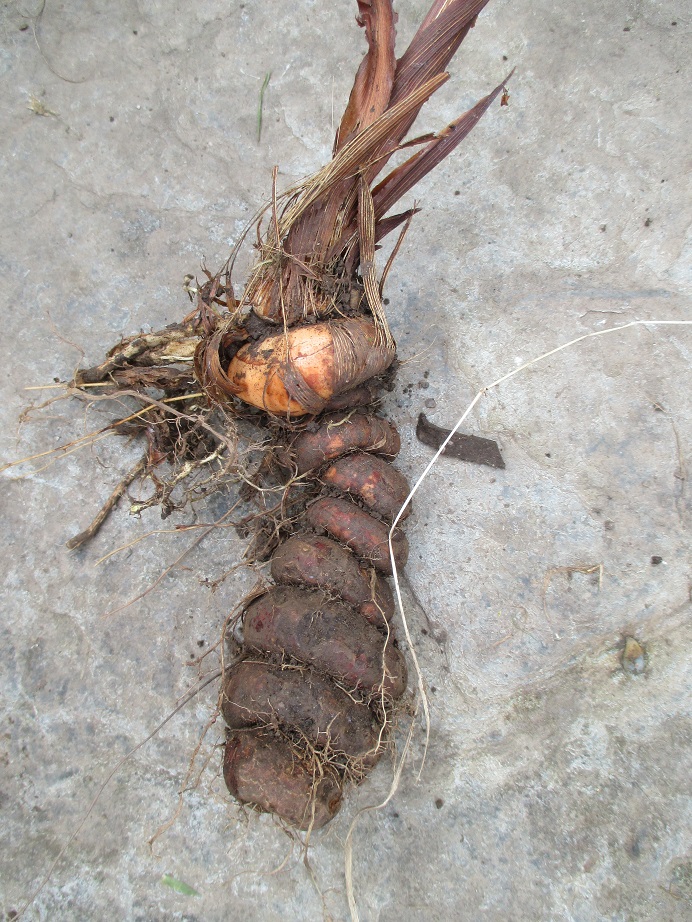IMG_0944For someone who professes to love plants, I spend an awful lot of time digging them up.  Last week my latest victim was crocosmia, probably that Old Devil called Lucifer. Any guilt is alleviated by the fact that it is nigh on impossible to rid yourself of these admittedly attractive plants.  This is due to that dastardly demon, evolution.  This South African member of the iris family produces a fresh new corm each year which balances on top of the previous years’ contributions.   To avoid popping out of the soil, some very clever contractile roots pull the whole chain down into the ground.  These replaced corms will gradually will fade away but not until they have hung on for a while, as an insurance policy.  For occasions such as this.  When I have spent a morning digging up their compacted, matted bulk.  It is at this point that one of these old timers (or perhaps more) will gently drop off the bottom only to emerge again next year in full crimson glory saying “ha, foiled you!”.  Such is my life.