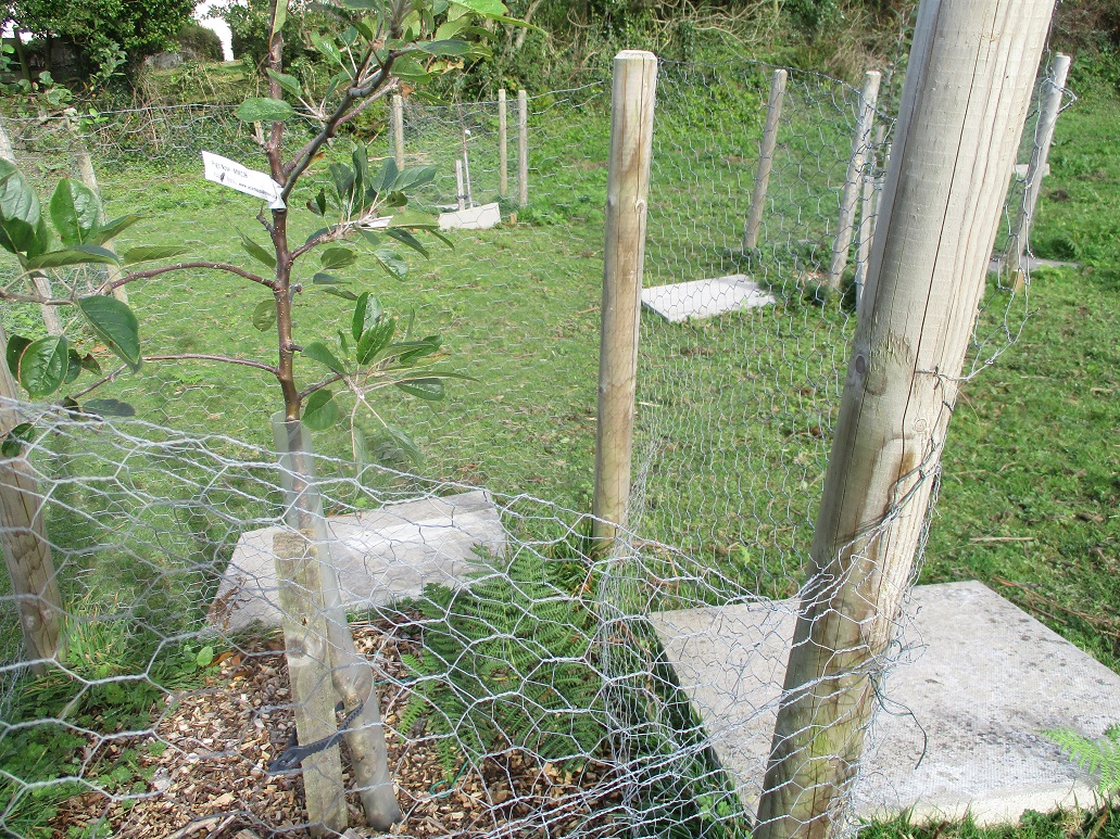 On my rounds at The Farm today I noticed that there had been some skulduggery in the new orchard.  The protective fence around the trees had been leaned upon, stretched, bent and torn.  I looked around for clues.  The ground has been scraped and clawed at in this area over the past few weeks, nocturnal worm hunting by badgers I would imagine.  But surely brock couldn’t reach up that high, and as there is no fruit on the trees I can’t think what would interest them.  The rabbits have been a problem in the past, but since we laid the paving slabs around the bases they seem to have lost the will to burrow beneath the new trees.  A bunny big enough to cause this damage would be the stuff of nightmares.  So who could it possibly be?