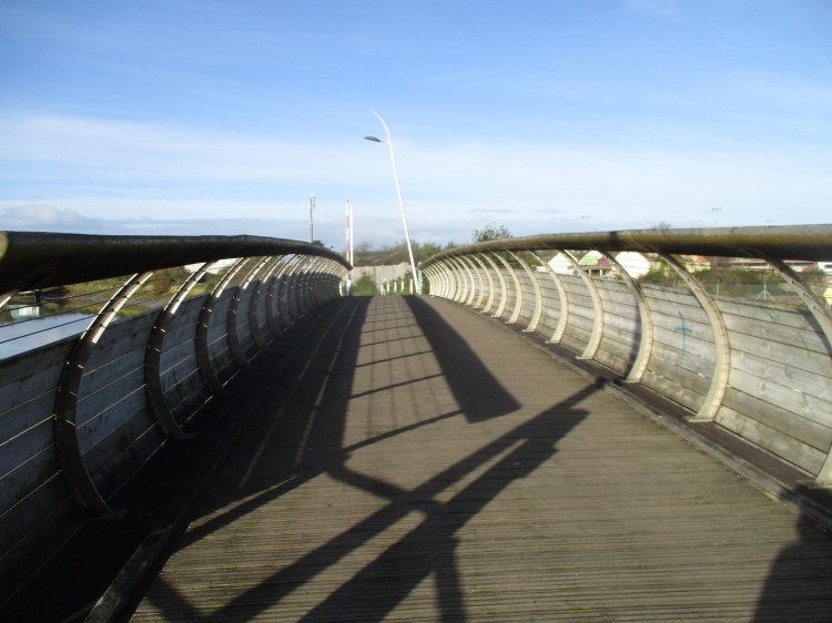 Then onto the next bridge, this time the Yeo, a wood and steel structure constructed in 2000. Its curving ribs remind me of a book I read as a girl about a castaway girl who made a home from a whale skeleton. Comforting, cocooning.