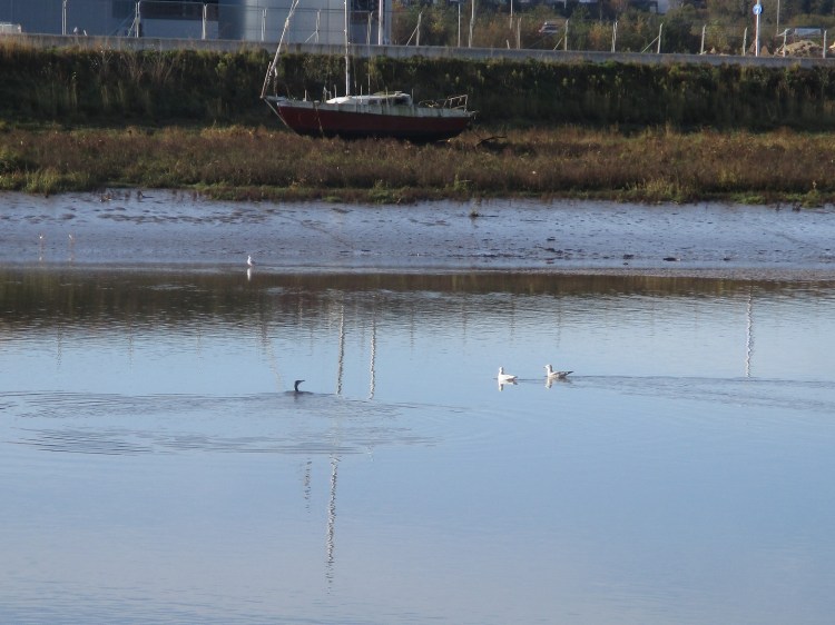Cormorants and gulls vied for position, although unlike the continually dipping cormorants the seagulls seemed uninterested in fishing, rather enjoying the barely perceptible outgoing tide gently caressing them towards the sea.