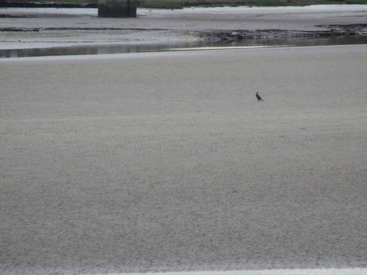 The miracle was that my car passed its MOT. So although the return journey was over-cast and I was laden with shopping, I still had a spring in my step. The tide was almost out and a cormorant sat in the midst of a sand bar, ruler of this temporary kingdom.
