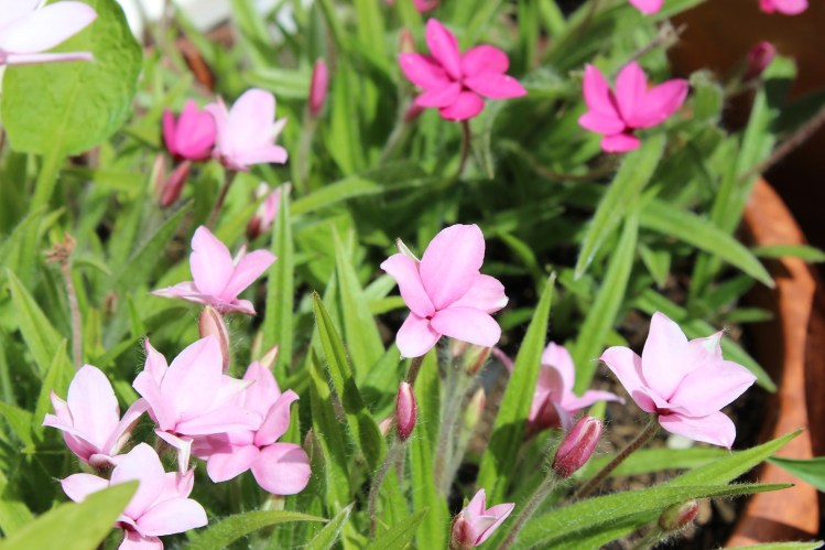 It is rhodohypoxis time again. This might sound a little like an embarrassing medical condition but in reality refers to these alpine iced gems. Somehow three varieties got mixed up and the garden demons stole their labels. Therefore they are known as an assortment of loveliness. It is my party.