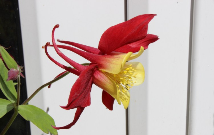 I grew this adorable Aquilegia canadensis from seed and the first flower is just beginning to unfurl. Compared to the other self-seeding thugs that dominate our garden, albeit beautifully, at the moment, it is a breath of delicately fresh air.