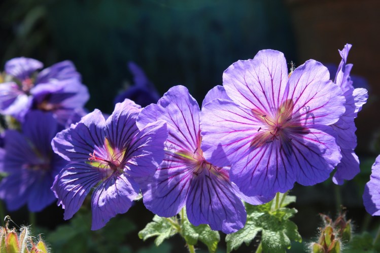 Next we have a horrid invasive geranium, it annoys me constantly by its continual march across the garden, swamping and strangling all that it passes. Then the sun catches the veined indigo flowers and I am once more smitten.