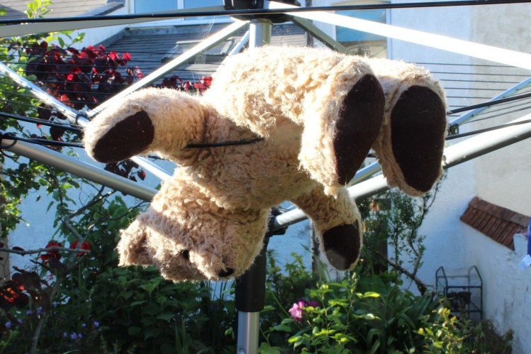 I blame the deliquent Teds next door, they must have led him astray. 😀 There is little hope of our geraniums suffering from excessive heat, raining again at the moment, I am sure I can hear the slugs and snails marching …….