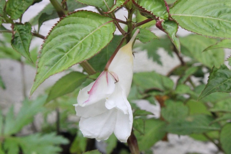 When I visited Marwood Hill Gardens a couple of weeks ago, the wonderful Malcolm gifted me this Impatiens arguta ‘Alba’. Yesterday I noticed that it had started to flower. Fabulous. A wonderful present.