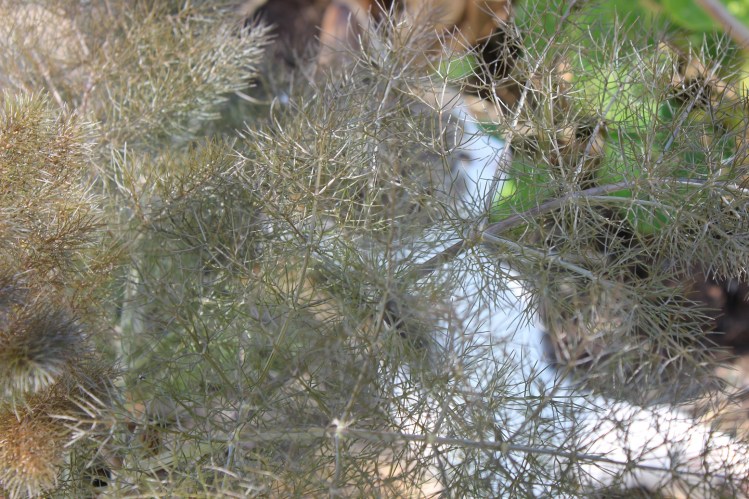 Lastly the bronze fennel, Foeniculum vulgare ‘Purpureum’, that I dug up and disposed of a couple of years ago. I may have left an iddy biddy bit behind. Talking of behind. Fat Ol’s sister Daisy thought my photo would be greatly enhanced by the addition of a sunbathing pussycat. I agree.