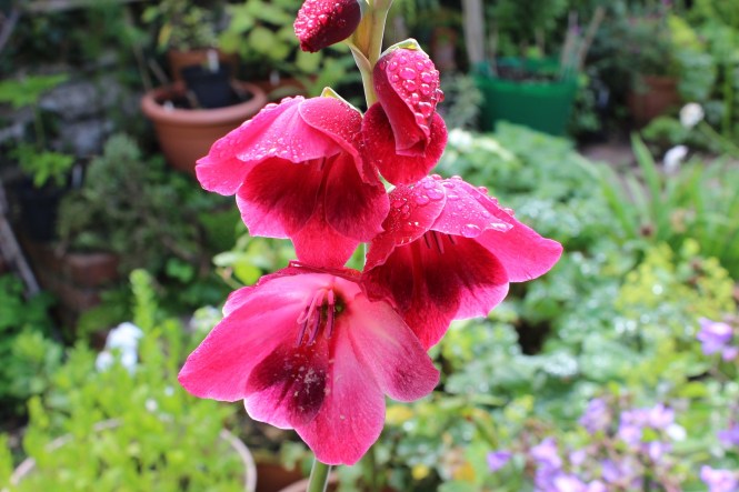5. Glorious it is, indeed, a chara. The downside of gloriosity is that I find it very difficult to photograph gladioli without having to go through contortions. I wonder if I were to stake them back at a reasonable angle?