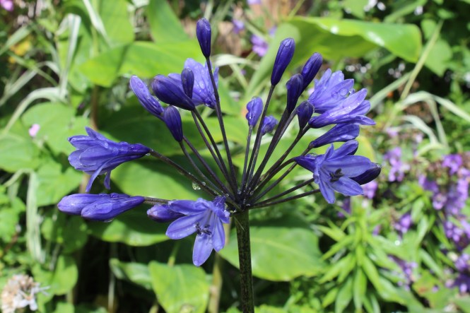 Now a disappointment. Yes, another one. This is, supposedly, Agapanthus inapertus ‘Midnight Cascade’. I have been waiting for it to flower for an age or two. After my initial euphoria, I now believe it to be an imposter. Life is like that sometimes, still the dark stem is rather nice.