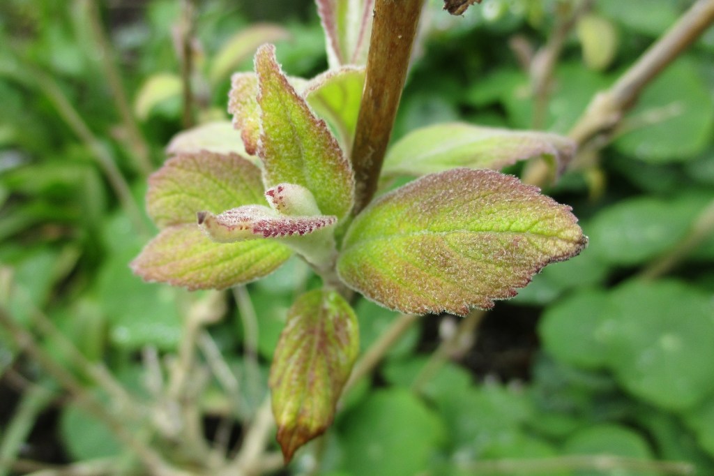 There are undeniable signs that the Colquhounia coccinea has survived the winter. I gave a cutting to Jim last year which I believe flowered. This one has never flowered. Bitter? Moi?