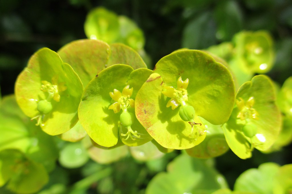 Then a rogue euphorbia, surreptitiously spreading at the back of the border. Still, the flowers are bizarrely beautiful.