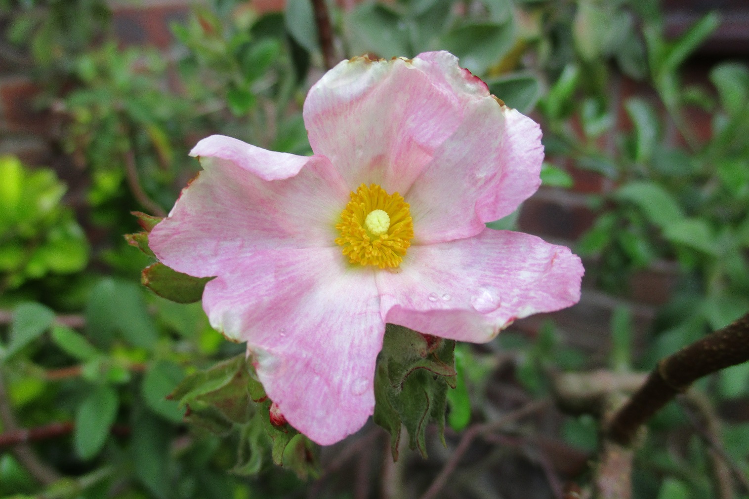 Then a cistus which is long and leggy in the shady front of the house. Not an ideal place but it is valiantly flowering.