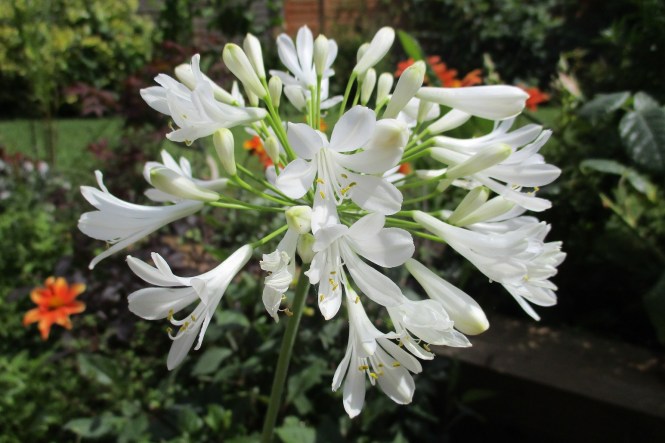 One of the very few plants (leave me to my delusions) that I have purchased since moving here is this white agapanthus. It sang the Song of the Sirens to me when we were visiting an open garden in the village. Do not fear, this is not a confession of another felony, it was in the plant sales.