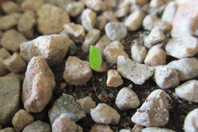 Finally, when ordering some radish seed a couple of weeks ago, somehow a packet of Aloe polyphylla fell into my virtual basket. I have been mesmerised by this Fibonacci succulent for a while now, but I have never been able to justify the cost of a plant. The little five seeds have been soaking in water for a few weeks and, thrillingly, one of them has germinated. This week I potted it up into a small terracotta pot and am hoping for the best. I have a feeling it might end in tears. It is tiny and vulnerable, the horicultural grit looks like landscape of boulders. Still, faint heart never grew fair aloe.