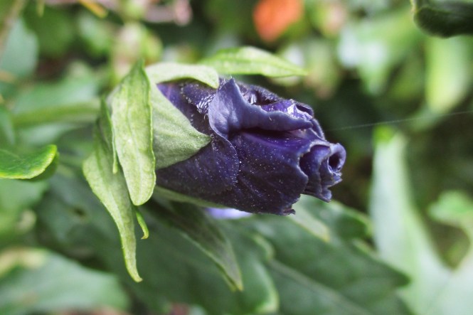 Onto, the third and final hibiscus, Chez Peggy. This is the navy blue bud of Hibiscus syriacus ‘Oiseau Bleu’, also known as Bluebird, blowing us all a kiss. Weird or wonderful? You decide.