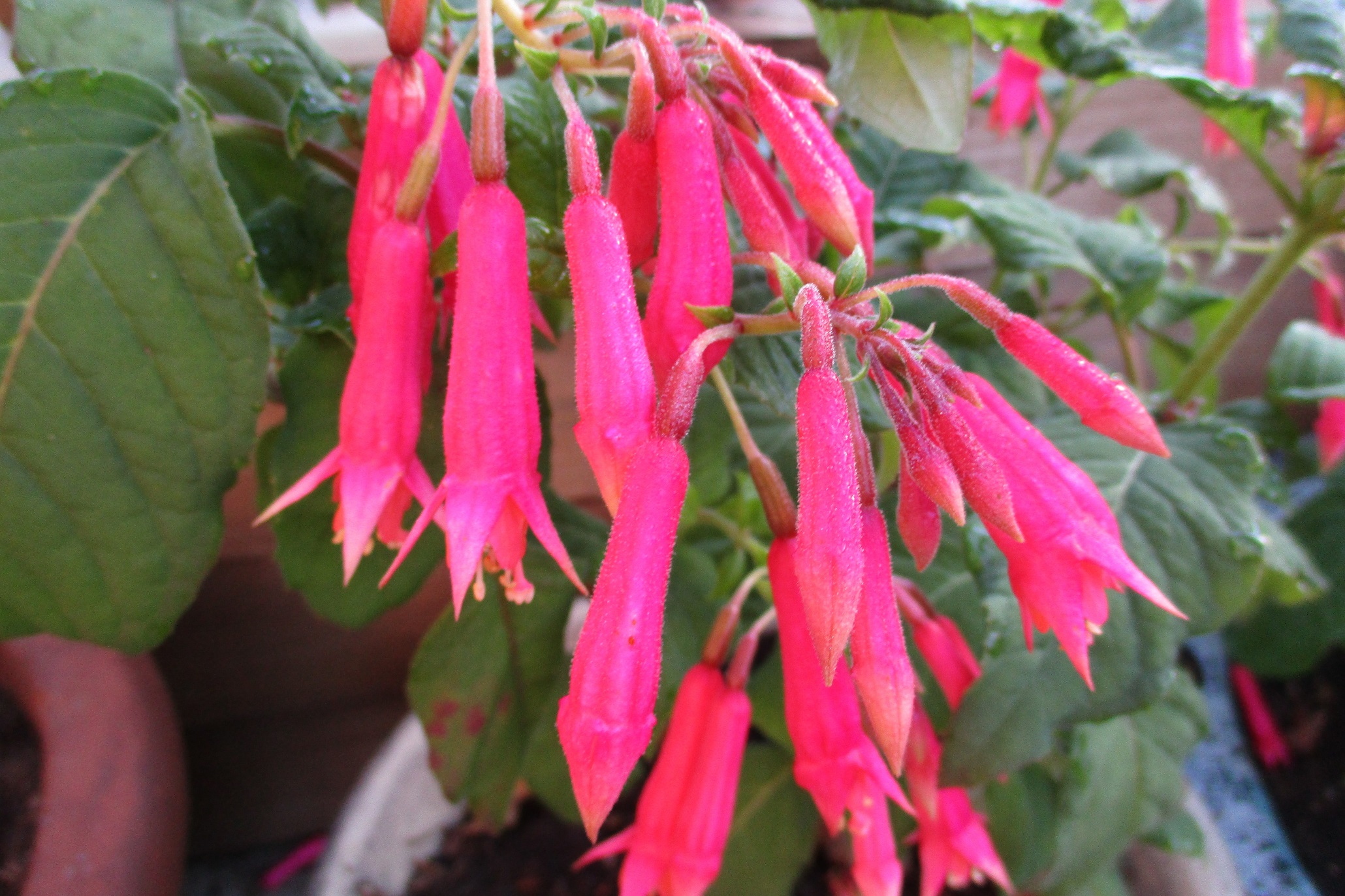 The danglers are just coming into their own and Fuchsia ‘Bornemann’s Beste’ is no slacker in this department. Just waiting for Eruption now, hopefully by next week.