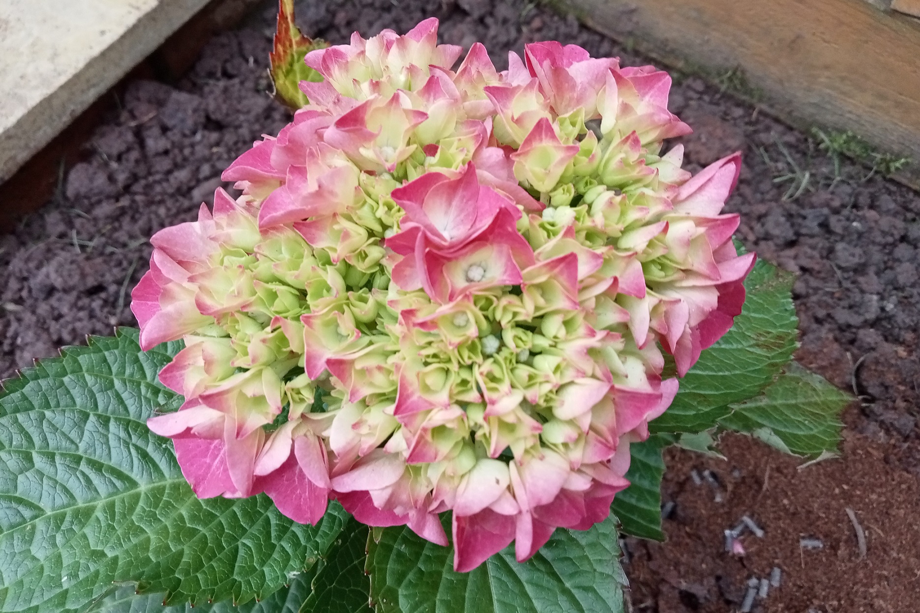 In the new North Border (working title) I planted a cutting from our wonderful red hydrangea in Ilfracombe (above not looking very red), Hydrangea aspera ‘Hot Chocolate’, Impatiens omeiana and Begonia ‘Claret Jug’. All a bit deciduous so in the middle went Pseudopanax ‘Moas Toes’, which is heading for the stars. I’m thinking about nipping out the top to encourage some horizontal growth, any thoughts? I will wait til spring so you have time to think about it.