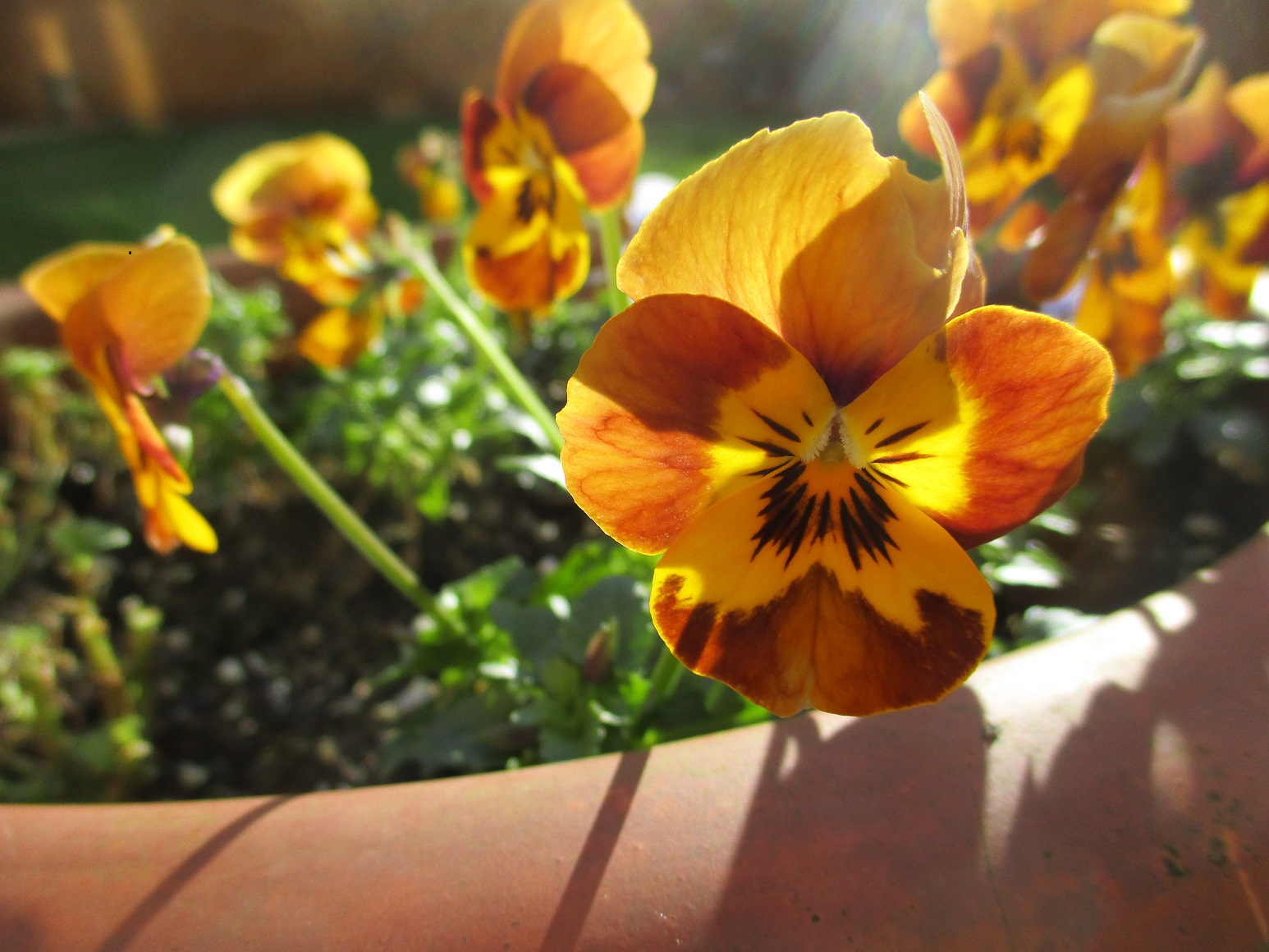 Another slouch has been the violas. It happens every year. They underwhelm for weeks on end and then suddenly, just when you had forgotten quite why you bothered, they do this. Beautiful backlit by the sunshine. Yes, I said sunshine. It has gone again now though.