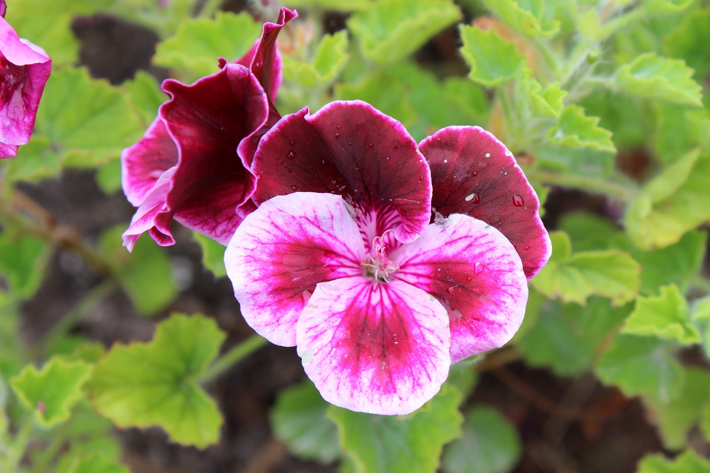 A once named but lost in the mists of time pelargonium has also found its way into one of the borders. Again, it seems happy, although I am not sure how it will fare in a clay soiled winter. Perhaps it will be confined for the wet and windy season.