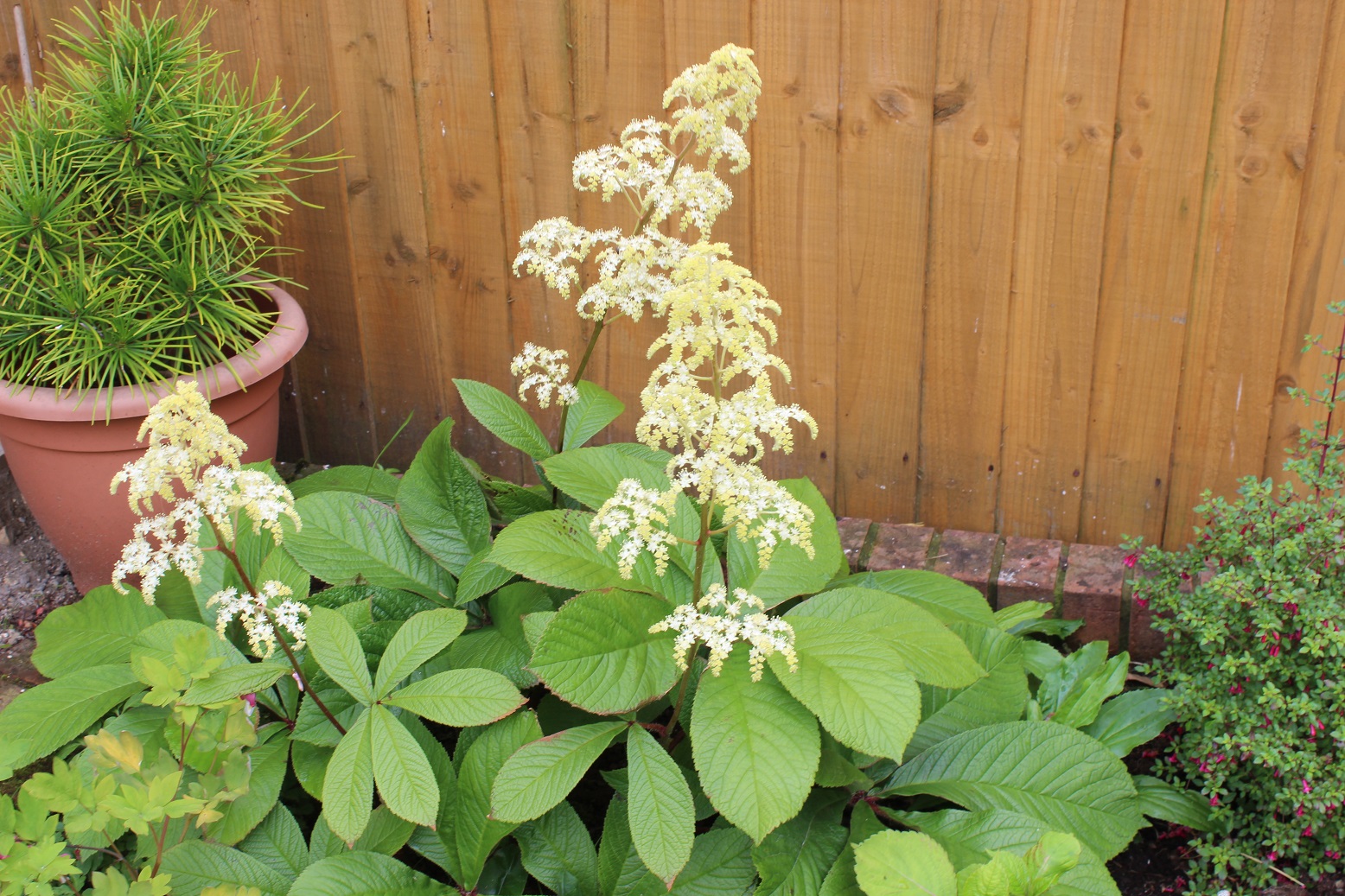 Onto Rodgersia ‘Heavenly Gill’ which has well and truly made itself at home in the border. Previously struggling in a pot and, however hard I tried to bring it comfort, was miserable and resentful. Now she loves me. And I love her.