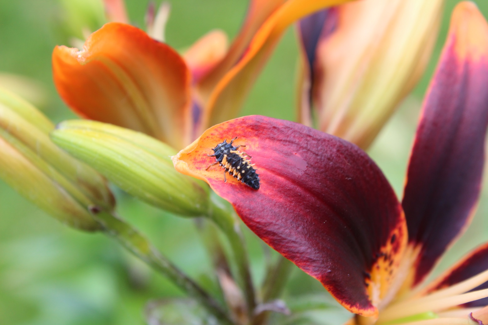 Finally, I was thrilled to find this little critter yesterday, a ladybird larvae. Oh yes, and it seems that I have actually, after many years and much disappointment, managed to grow Lilium ‘Susan’. And very lovely she is too. Although a little small. Next year …..