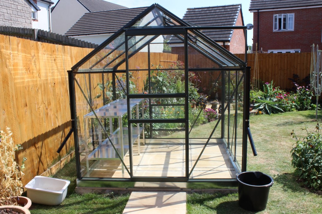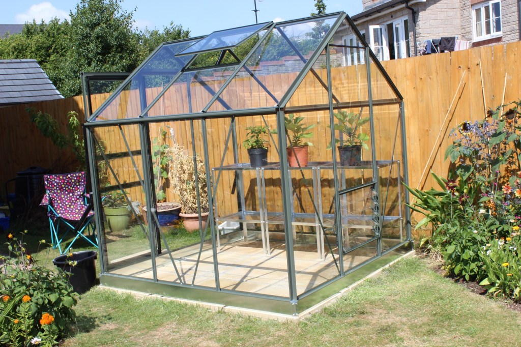 I’ve got a new greenhouse. Sorry to repeat myself, but I am very excited. I’ve got a greenhouse that is not made of plastic and kindly donated by my sponsor. I am chuffed. It is not a posh one, there are no finials or decorative edgings, but it is beautiful. I am smitten. It is all I can think about.