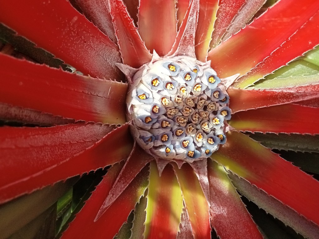 In a small park opposite Jubilee Pool there are several large stands of Fasicularia bicolor. Perhaps a little indelicately, I peer ed into rosette after rosette until I found just what I was looking for. Fantastic.