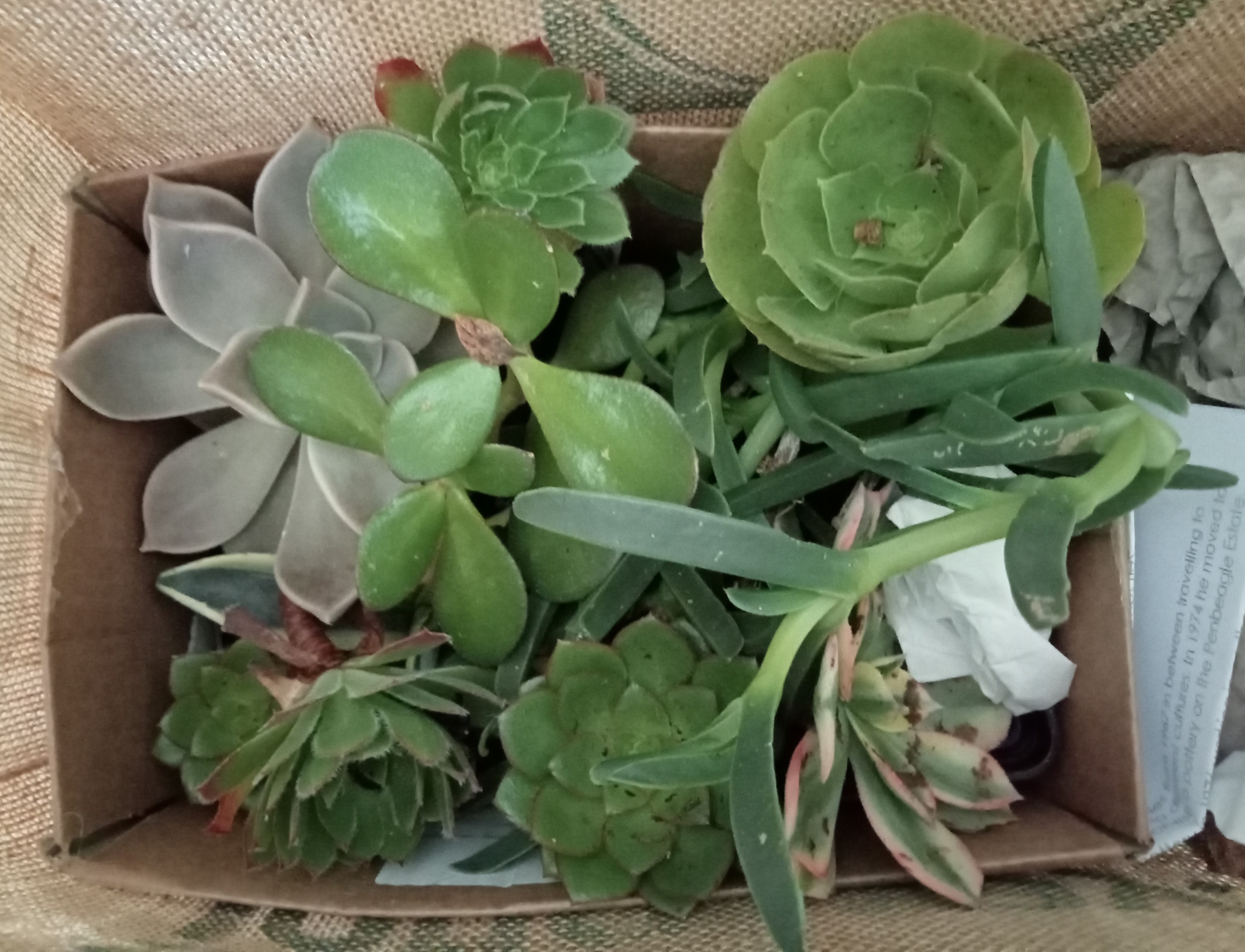 I don’t have the best eye sight, but I can spot a plant table at 100m. Wandering around the back streets of Newlyn, I spotted a suspicious blur in the distance. I did not raise my hopes, having walked past one in St Ives selling aeonium cuttings for a disgraceful £12 for a small pot. No such nonsense here. I was jubilant; a jade plant, a hottentot fig and, joy of joys, a small variegated agave. £8 for the lot and all for a children’s charity. Add to this the cuttings that our lovely landlady took of all her succulents and we had a nice little box to bring home. Happy, happy, happy.