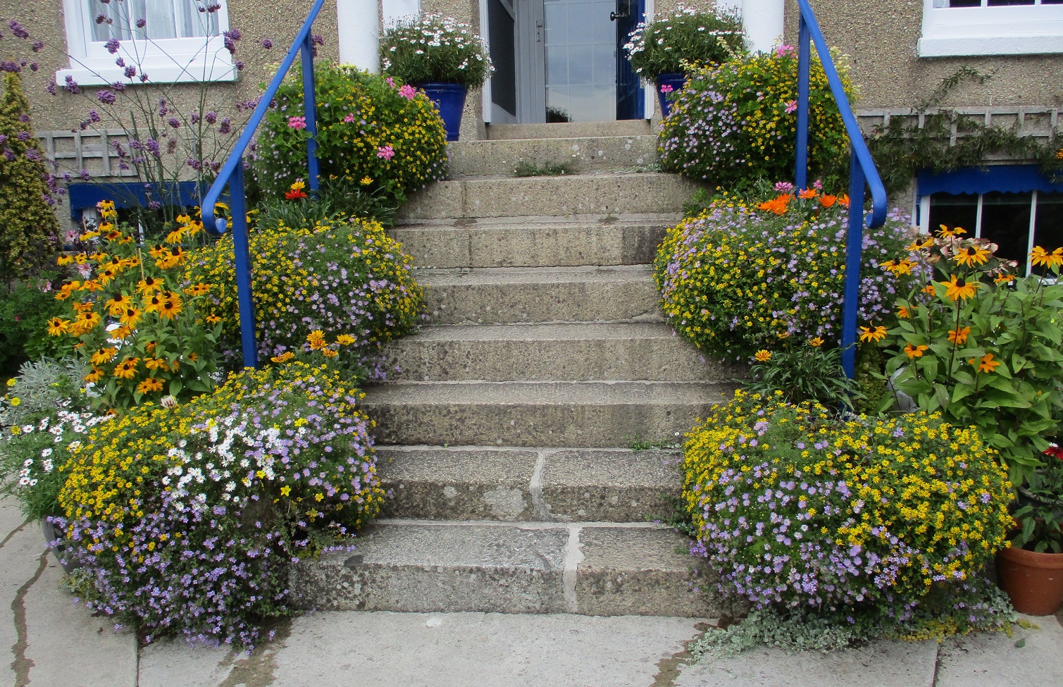 Those steps to the B&B are amazing what great hosts. Were the plants in posts or growing in beds next to the steps? Great garden tour too, many thanks for the photos.