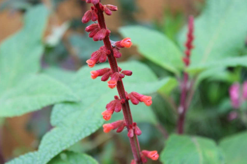 First, we have Salvia leucantha ‘Purple Velvet’, another newby from fellow salvia lover Creigiau John. It is in a pot sunk into The Bed of Anarchy all ready to be taken into the relative warmth of the greenhouse. If I get taken unawares by Jack Frost, there are well-rooted cuttings. Sorted. I hope I haven’t tempted fate.