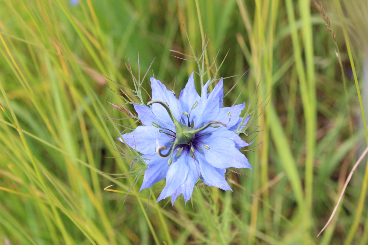 Underneath our rotary washing line we have an area of set-aside. A nigella has seeded itself there. Very pretty.
