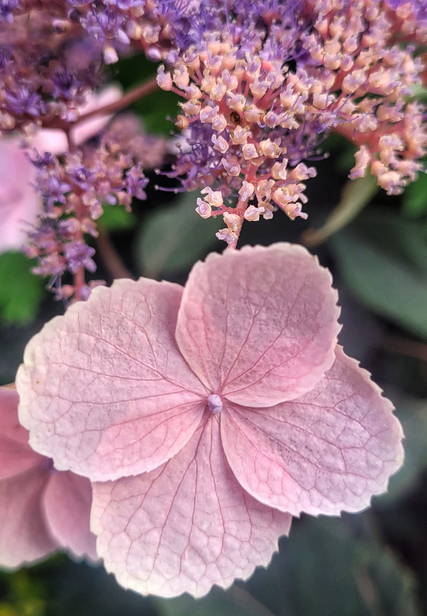 In the past I have dismissed the flowers of Hydrangea aspera ‘Hot Chocolate’ as wishy-washy at best. I have been proved wrong.