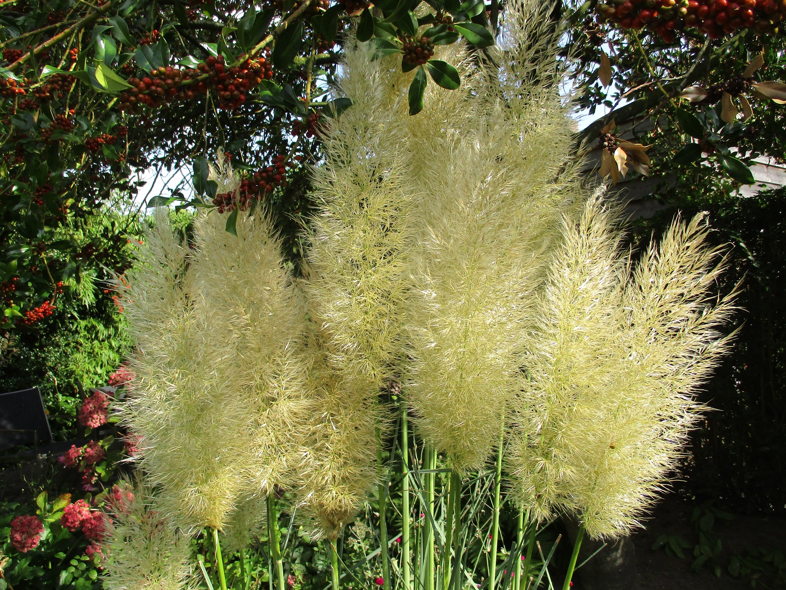 Cortaderia jubata is one of the most aggressively invasive exotic species here, so I am none too keen on pampas grass either. Brent sometimes offers me pieces of his Cortaderia pumila, but I still decline. It really is pretty, I just do not like pampas grass.