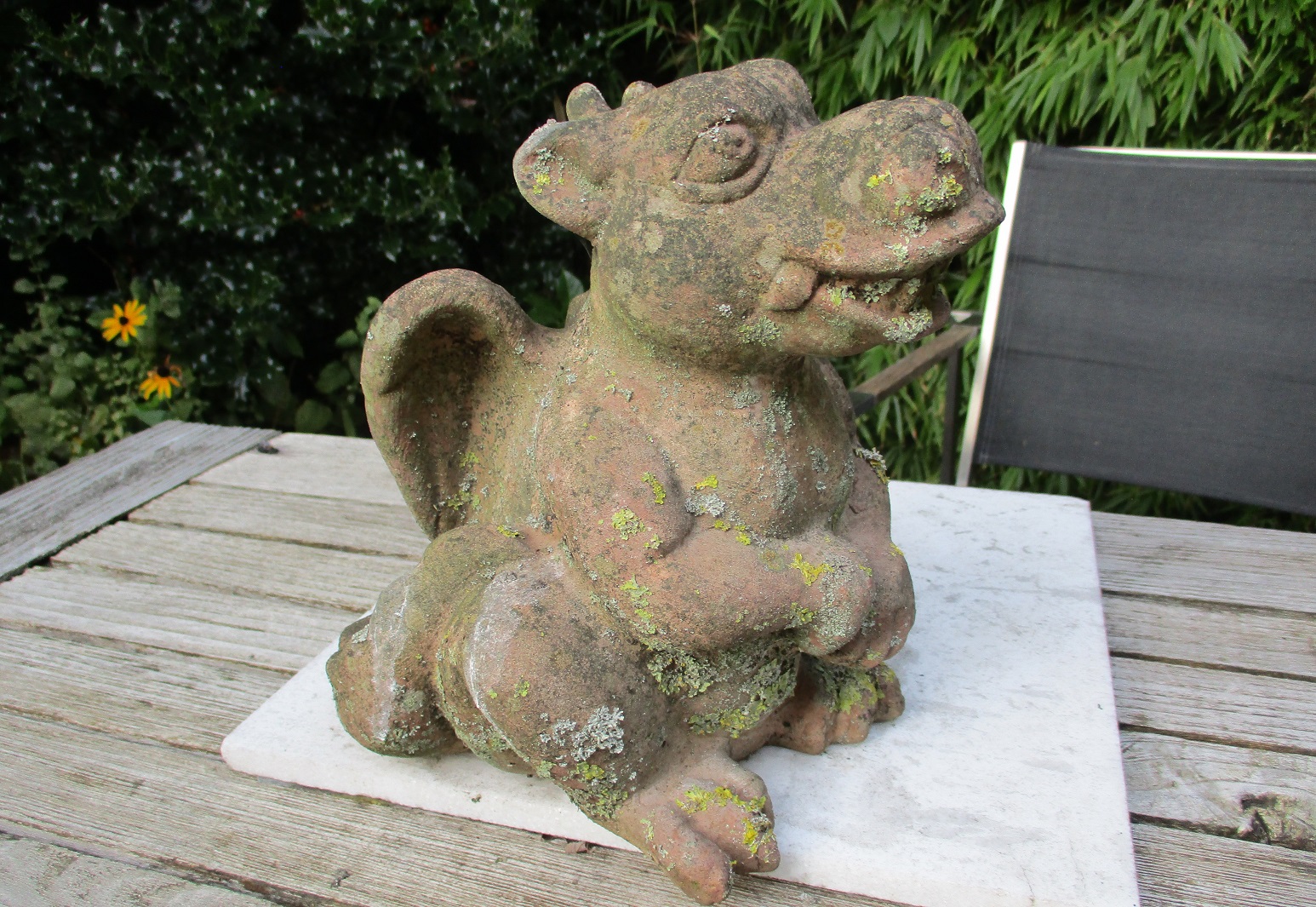 Finally, a dragon. This was a gift from us to them, many years ago, as the lichen clothes tell. We have a similar one in our garden, but not so well dressed as this.