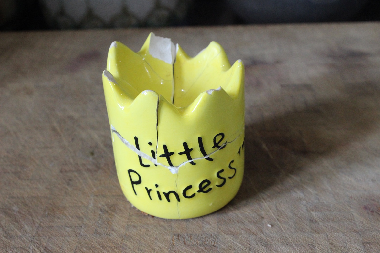 That is until a couple of months ago when disaster struck. A stray elbow, a careless hand, a vindicative sprite, for whatever reason the precious egg cup fell to the ground, shattering into a thousand pieces. “Don’t worry, I can fix it” my valiant, and probably over-ambitious OH reassured me. And he did. In his way. And I love it. And it is both delicious and funny.