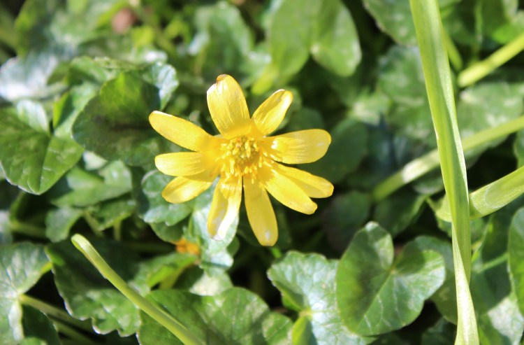 Some consider lesser celandine, Fiscaria verna, a noxious weed. Although nigh on impossible to eradicate, due to the tiny root tubers which drop off when the plant is disturbed, they are invaluable for early pollinators. They disappear below ground before summer is here and what is more they are a little ray of sun shine. Just like me.