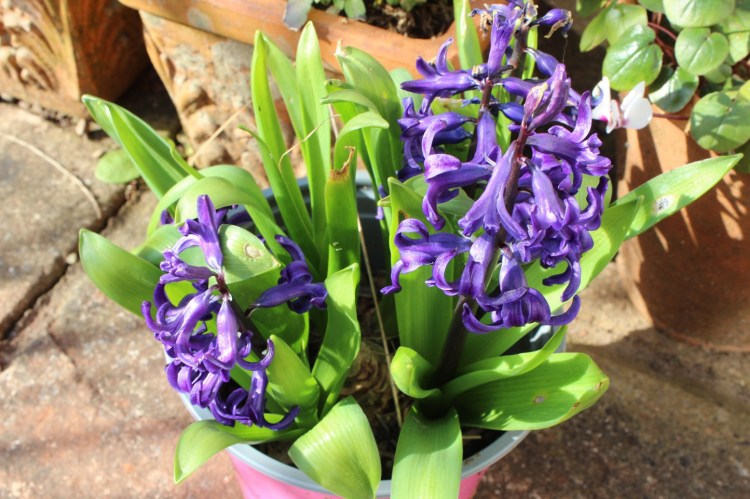 These hyacinths were dug up from their terracotta pot and stuck in this pink plastic one after they had finished and replaced by some other floozie. The plan was to replant them in the autumn. The gardener forgot. The hyacinths went ahead anyway. Yet again, surplus to requirements.