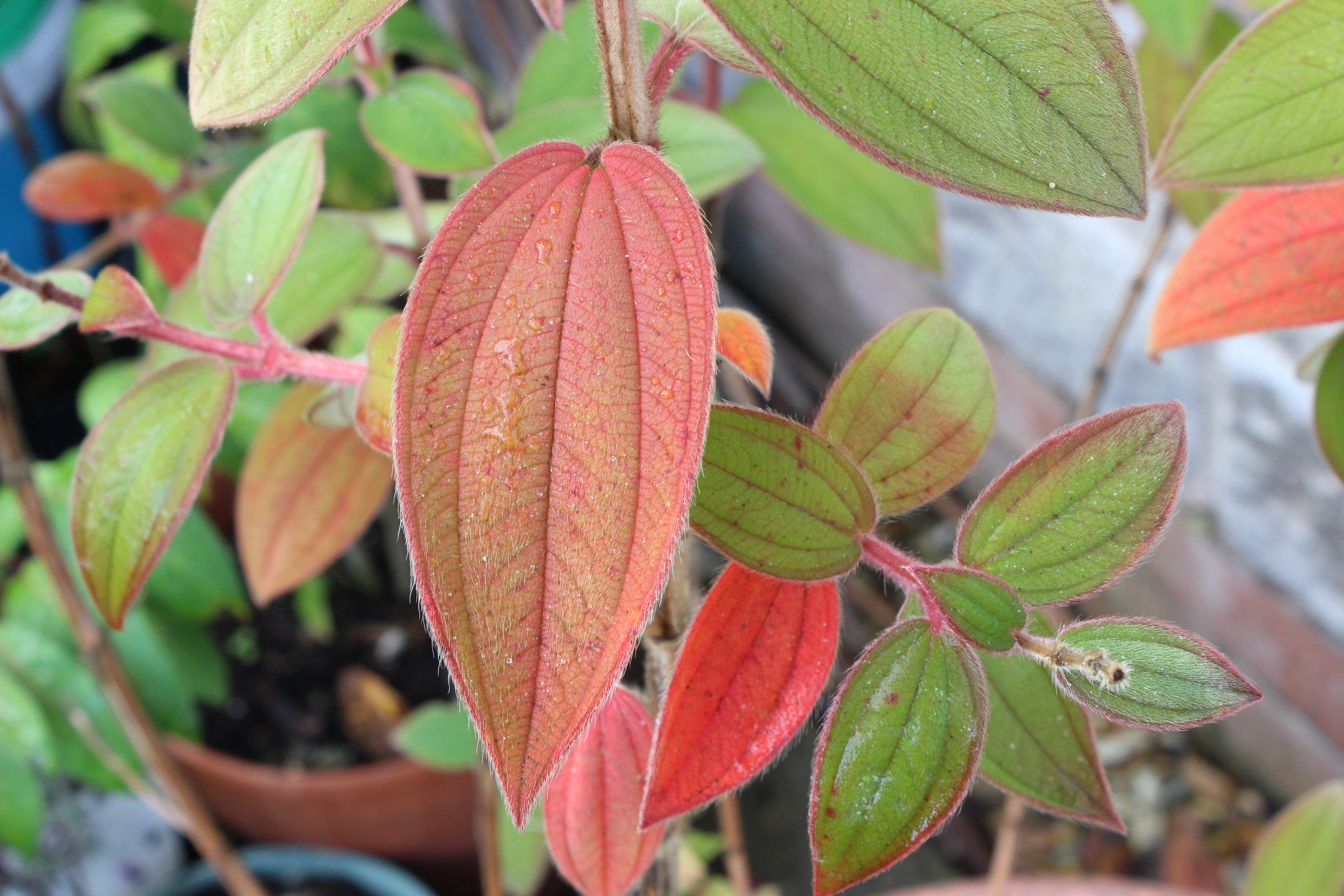 Definitely on its way to shelter in the greenhouse is the Tibouchina urvilleana. Before its incarceration for the colder months, it is showing some very pretty autumnal colours.