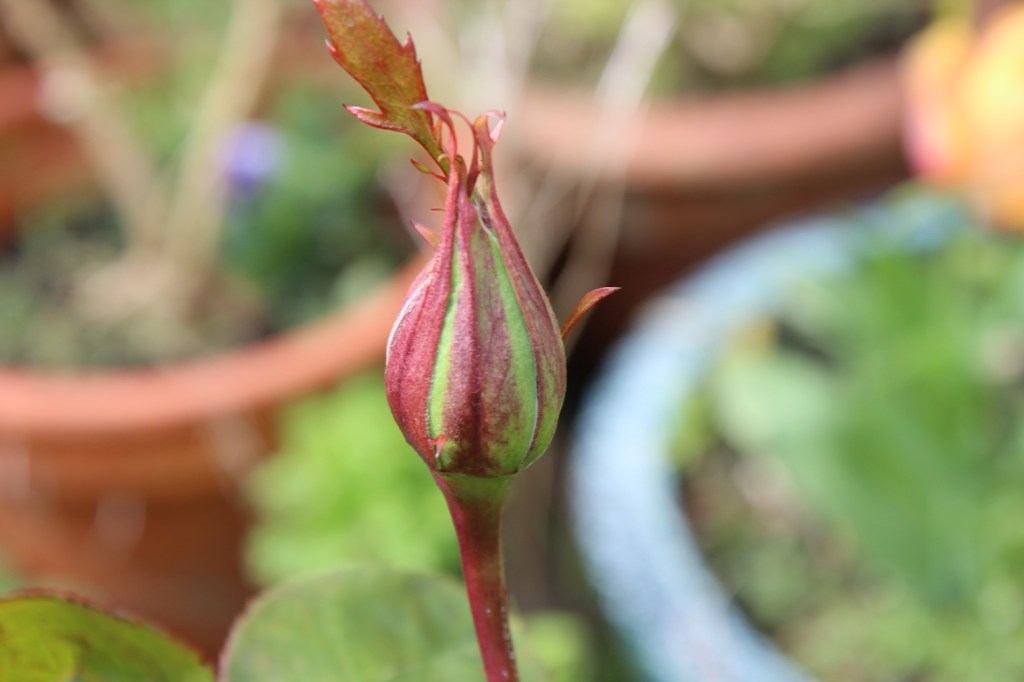 The first rose bud has arrived, this is Fragrant Cloud, a favourite of both myself and OH. Yes, we do agree on some things.