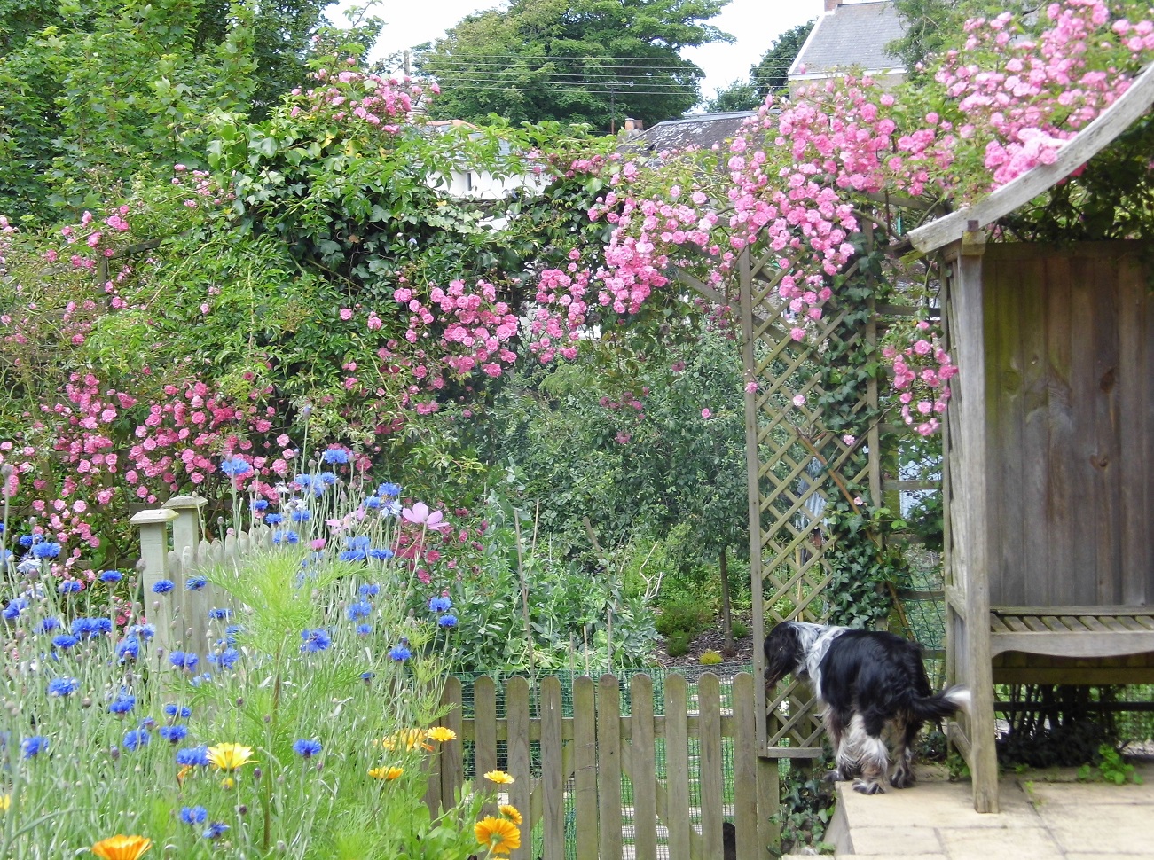 Bobby has a very important job, she is chief chicken watcher. All day long, she stands sentry at her post watching for any protocol infringements. She rarely leaves this spot, only perhaps the odd break for a jolly race around the lawn with a stick, or a brief but enthusiastic greeting to a visiting gardener. Her vigil is relentless. She doesn’t bark, or try to chase them, she just watches, watches, watches. Intensely. These birds are tricky customers, you never know quite when they might rise up and ………, actually quite what they are going to do is unclear. But Bobby knows, and that is all that matters. She is a very diligent and beautiful girl.