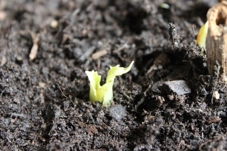 For the past two weeks “COME ON PEGGY!” has been periodically shouted at a nondescript pot of compost residing in my dining room. I potted up all my dahlias a couple of weeks ago and they are now sitting in the pathetic plastic greenhouse, hopefully thinking about some action. This one had special treatment, bought into the warm of the house. It is the dahlia I named after my mum. The full story is here: It is All in the Name. Eventually, as you can see, she listened to my pleadings. That’s a first. (not really)